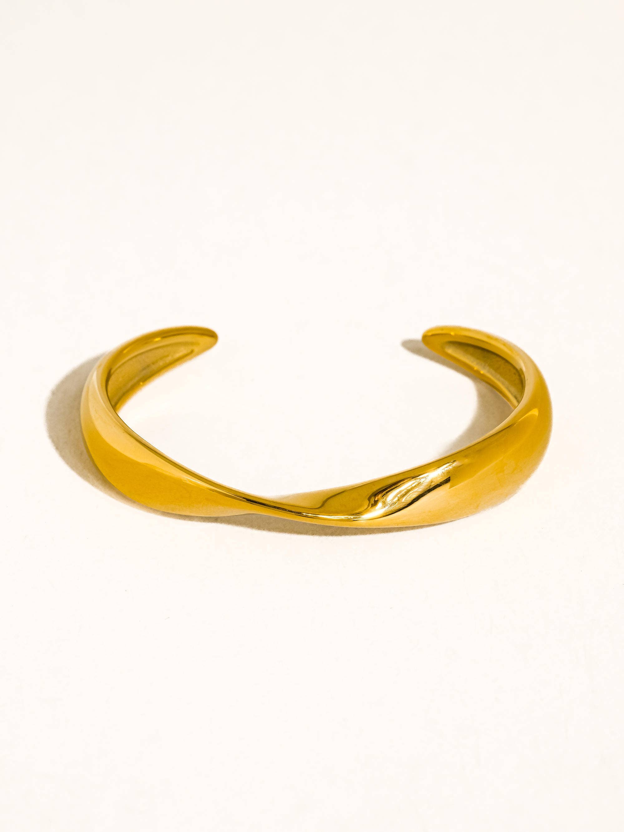 18K Gold Non-Tarnish Sleek Twist Cuff Bracelet