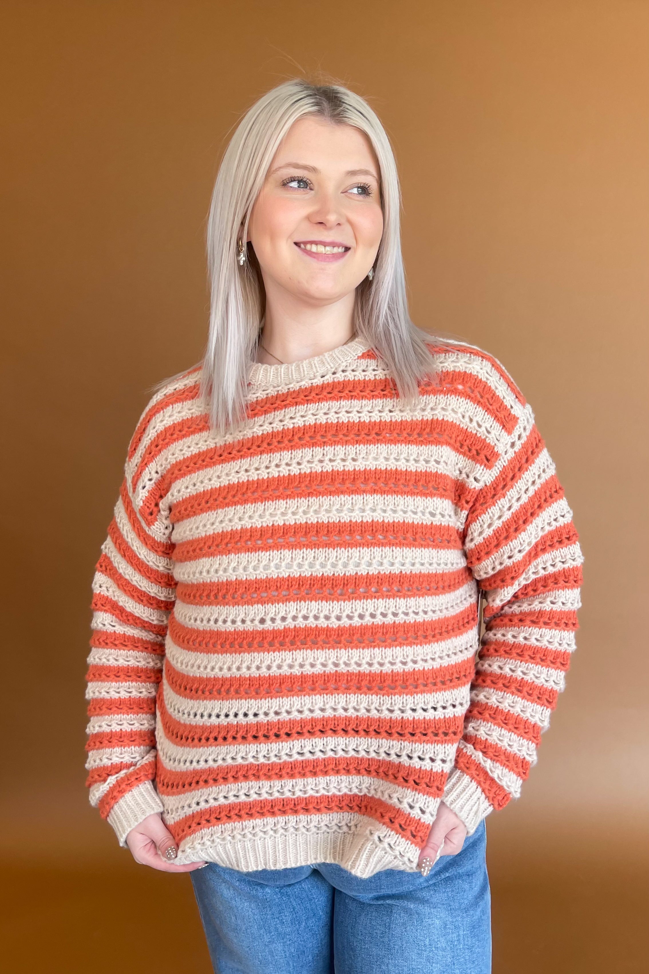 striped pointelle sweater