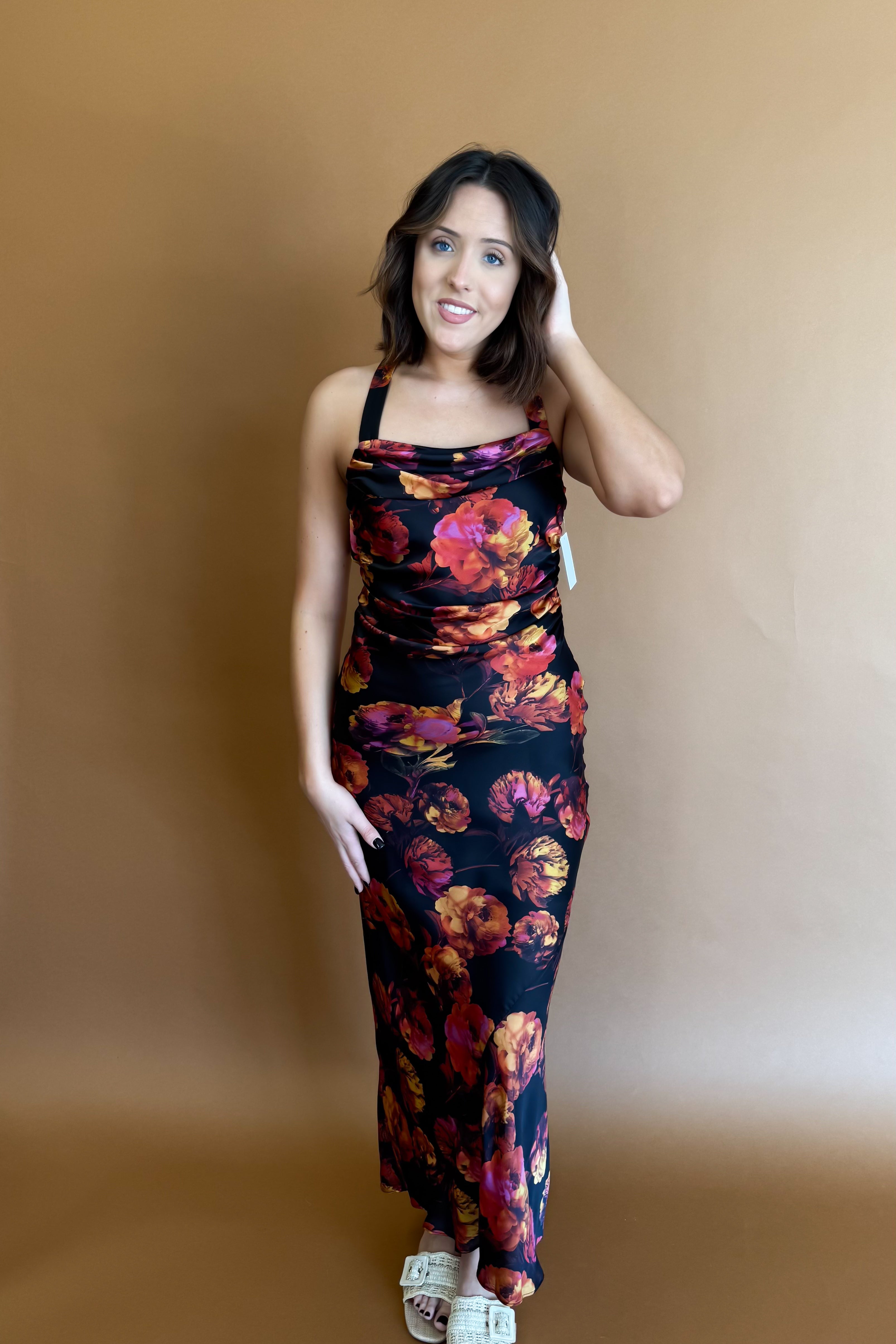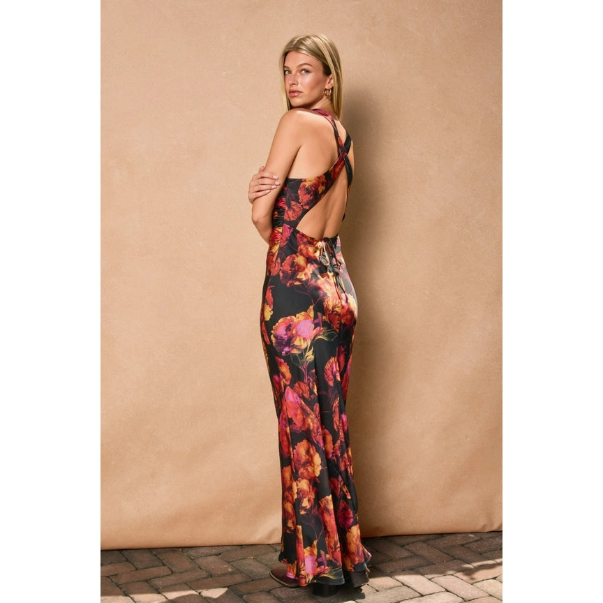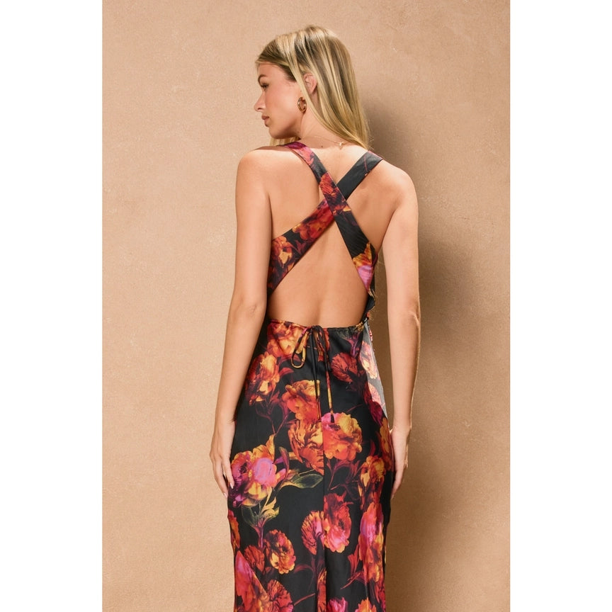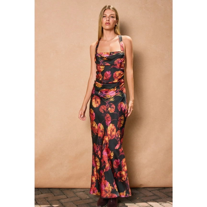 - Cross back detail - Square neckline inside a cowl neck - Shirring detail - Diagonal seam on the skirt - Drawstring fastening on the back waist - No pockets - Partially lined (Top front bodies, bottom partial length) Shell: 100% Polyester Lining: 100% Polyester