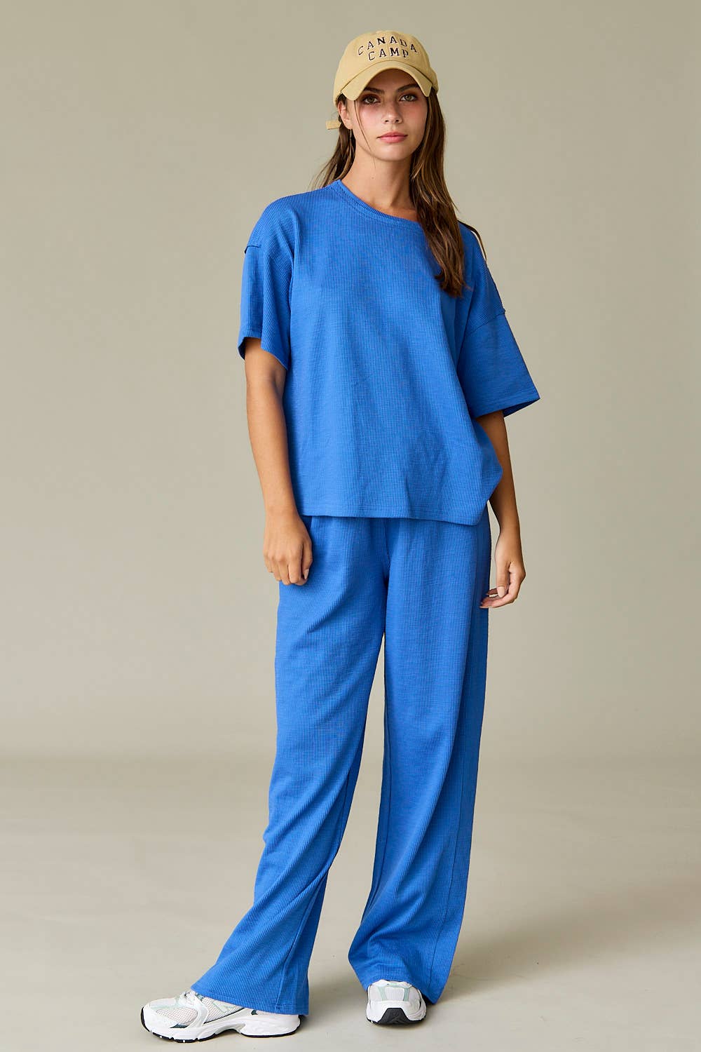 Layla Loose Fit Textured Knit Top and Pants Set -Loose Fit -Textured Knit -Top and Pants Set 67% polyester 29% cotton 4% spandex