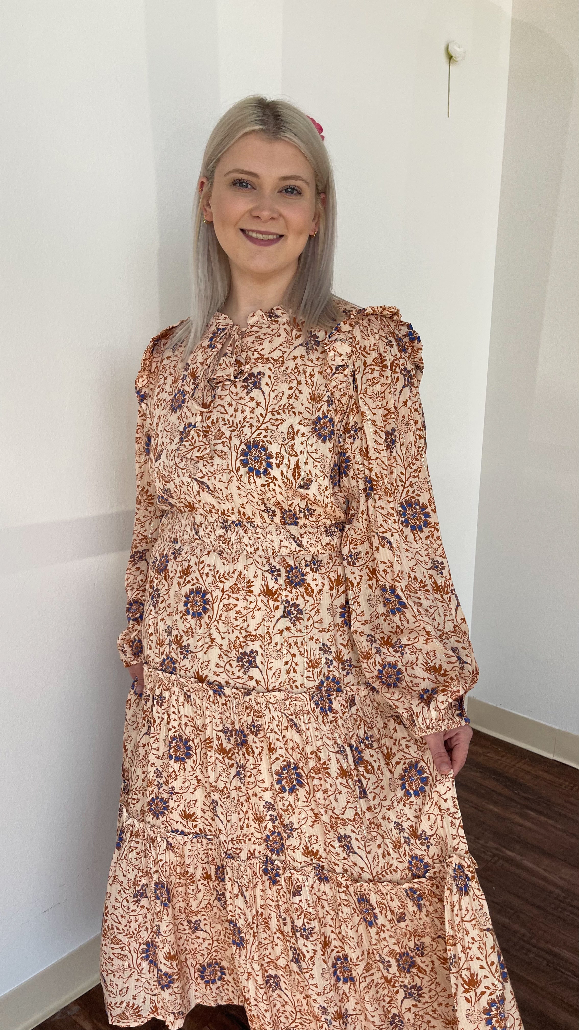 Long sleeves boho floral tiered peasant midi dress with side pockets,