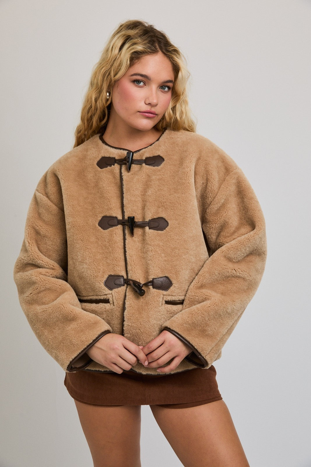 coat with faux leather detail