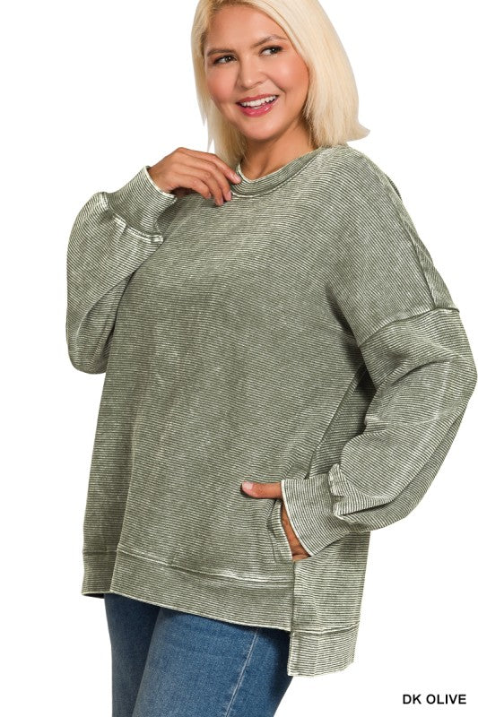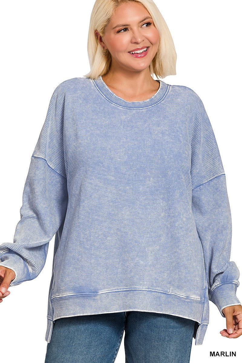 Acid Washed Double Ribbed Hi-low Pullover, 100% cotton