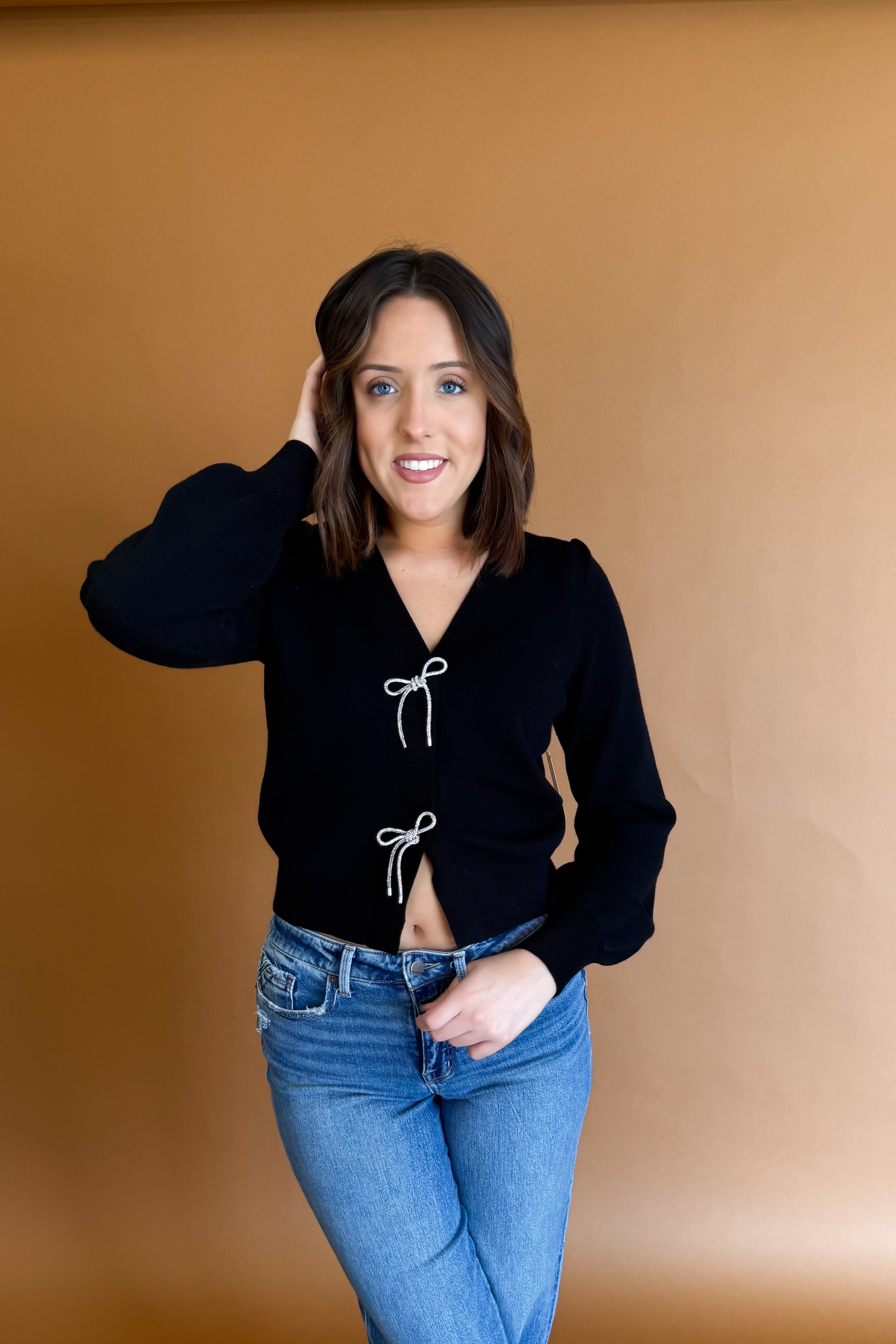 Crafted in a soft knit, it offers a romantic touch to any outfit-perfect for layering over dresses or pairing with high-waisted bottoms for a polished yet playful look.