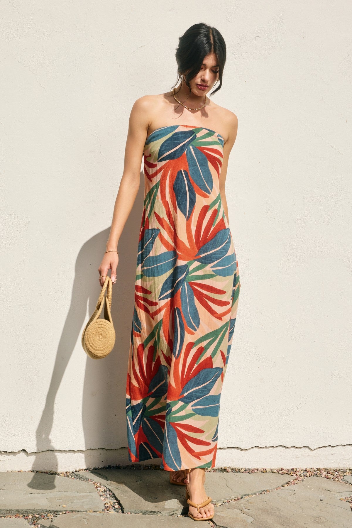 - Tube top - Strapless with grip gel tape - Sash tie fastening on the back - Pull on closure - Elastic band on the back - No pocket - Partially lined (Top bodies, bottom partial length)