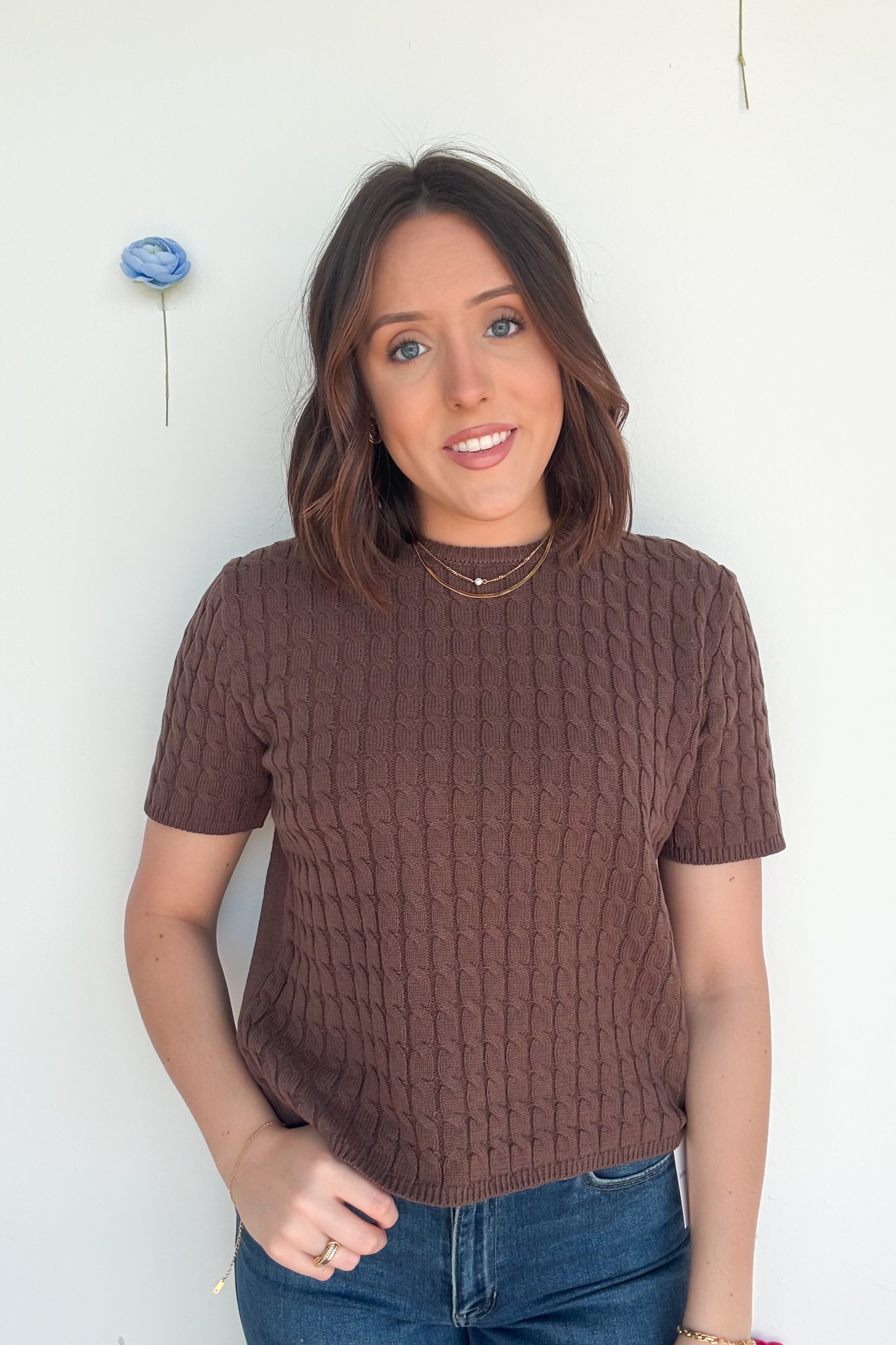Create your favorite fall looks with this cozy sweater. Made from cable knit, this sweater shapes a crew neckline with short sleeves. The straight fit bodice gives an effortless vibe, making it great for casual outings. 60% Cotton 40% Acrylic