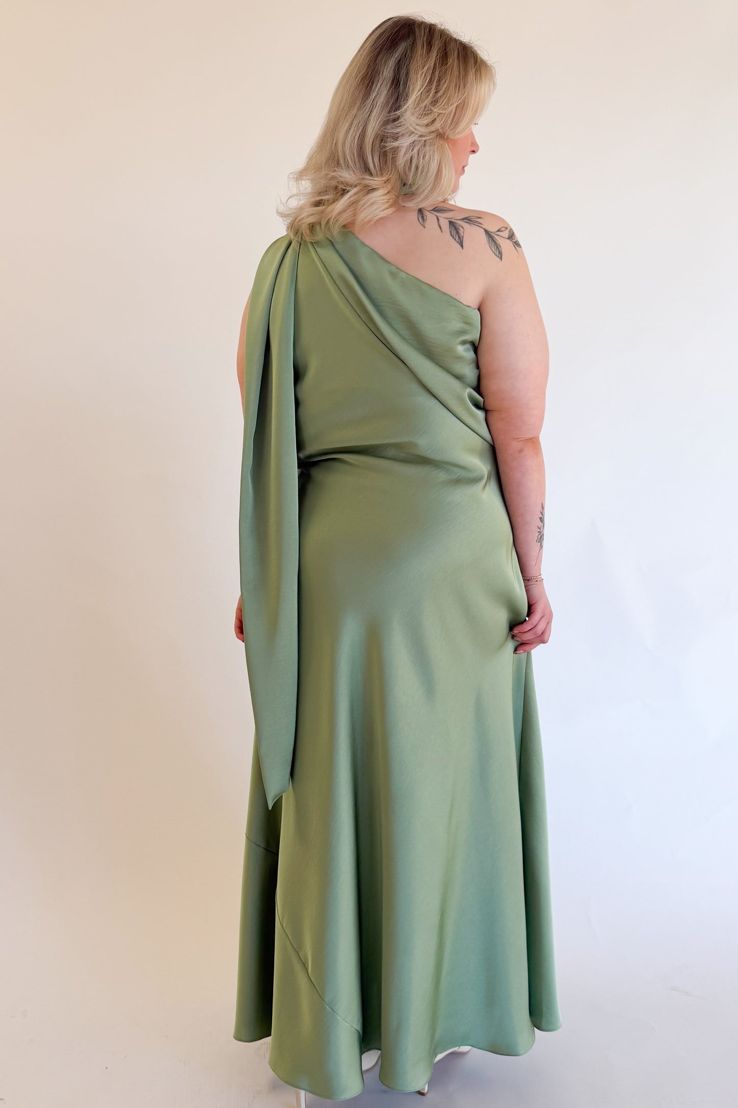 Mock Neck Sleeveless With Draped Muffler Satin Maxi Dress